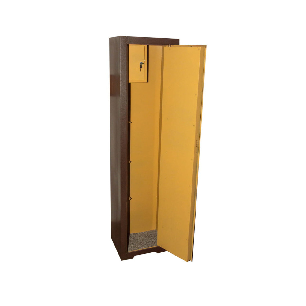 Оружейный сейф окрашен краской с молотковым и перламутровым эффектом. Покрытие износостойкое, удобное в эксплуатации, защищает сейф от коррозии. Стандартный цвет: коричневый. Возможно окрашивание в другие цвета по согласованию.
