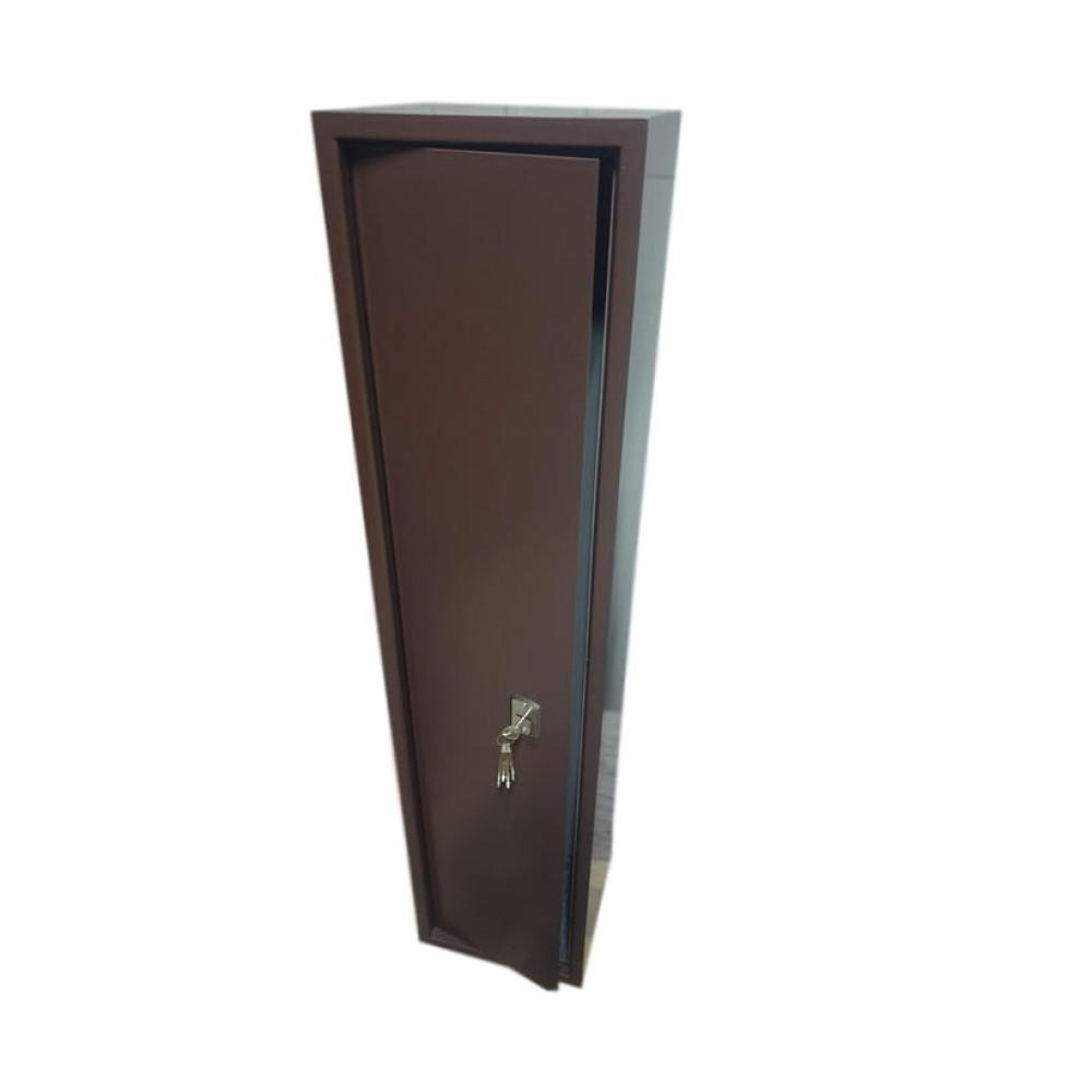 Корпус оружейного сейфа усилен профильной трубой со стороны двери, что придает конструкции дополнительную жесткость и повышает уровень устойчивости ко взлому. Дверь данного сейфа утоплена, что также увеличивает его надежность. Конструкция корпуса выполнена из листов стали толщиной 2,0 мм (корпус) и 2,0 мм (дверная плита). Дверь сейфа одинарная усилена по периметру, замок закрытого типа.