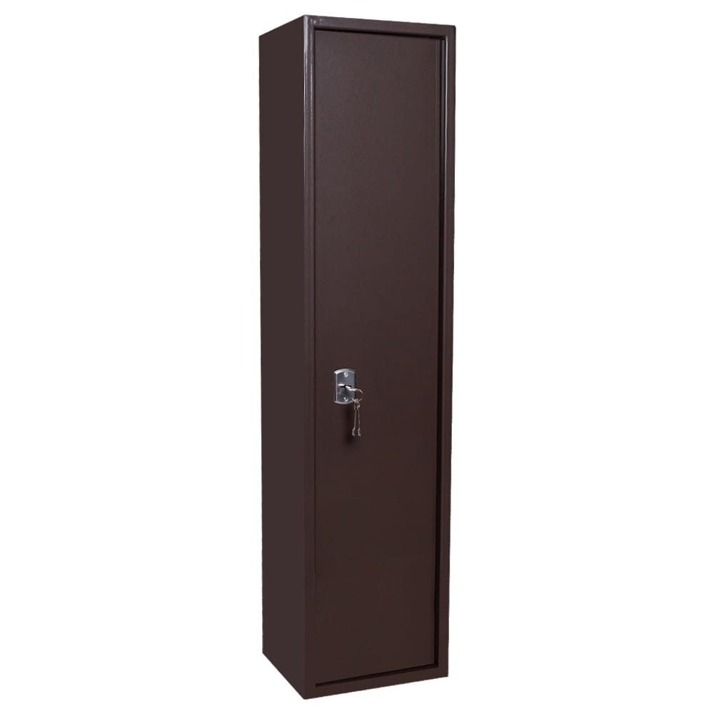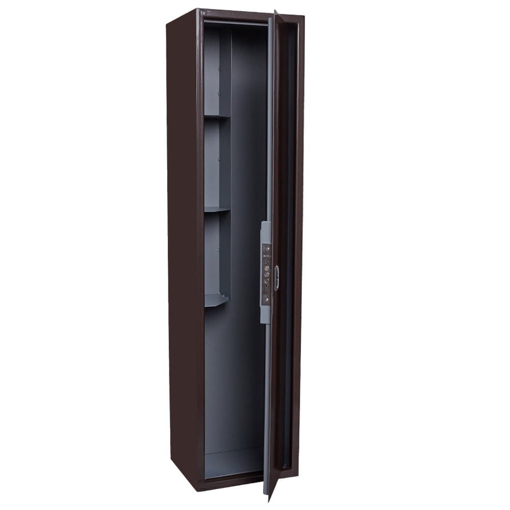 Корпус оружейного сейфа усилен профильной трубой со стороны двери, что придает конструкции дополнительную жесткость и повышает уровень устойчивости ко взлому. Дверь данного сейфа утопленного типа, что также придает надежности конструкции. Конструкция корпуса выполнена из листов стали толщиной 2,0 мм (корпус) и 2,0 мм (дверная плита). Дверь внутри усилена профильной трубой, замок закрыт.