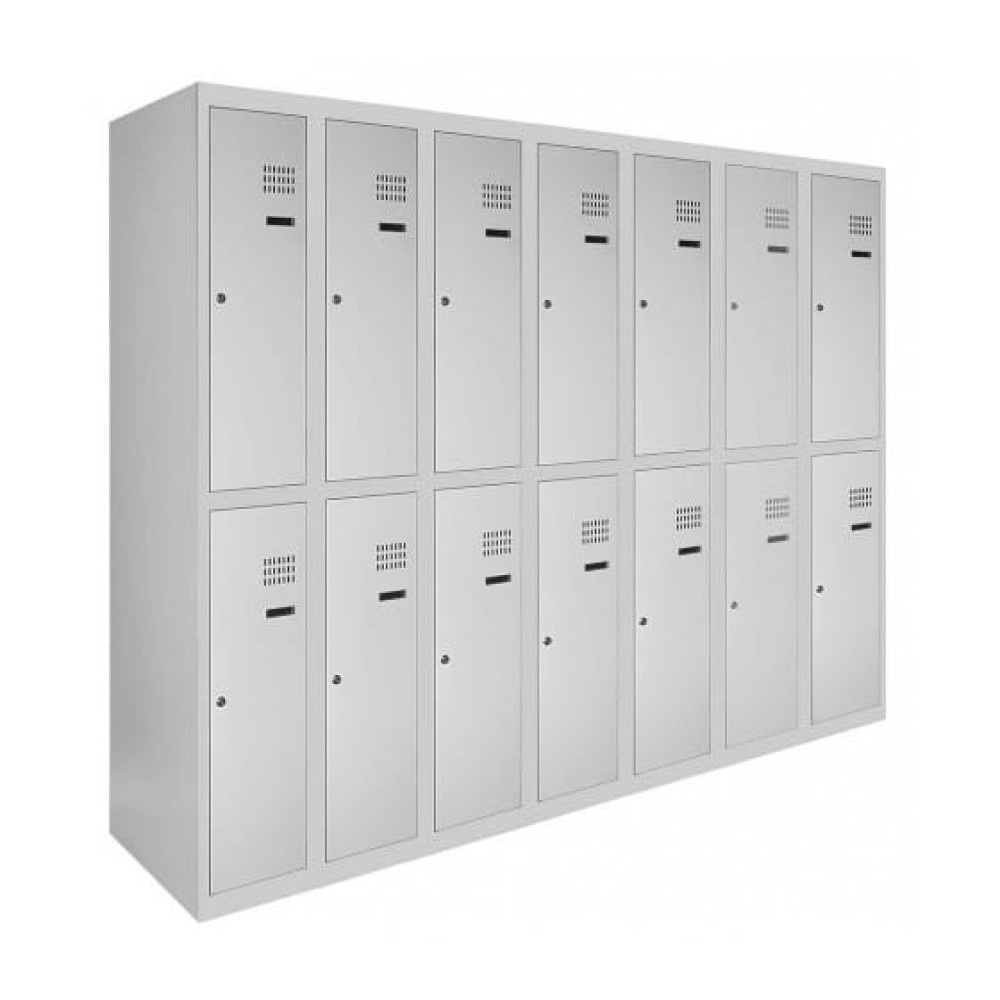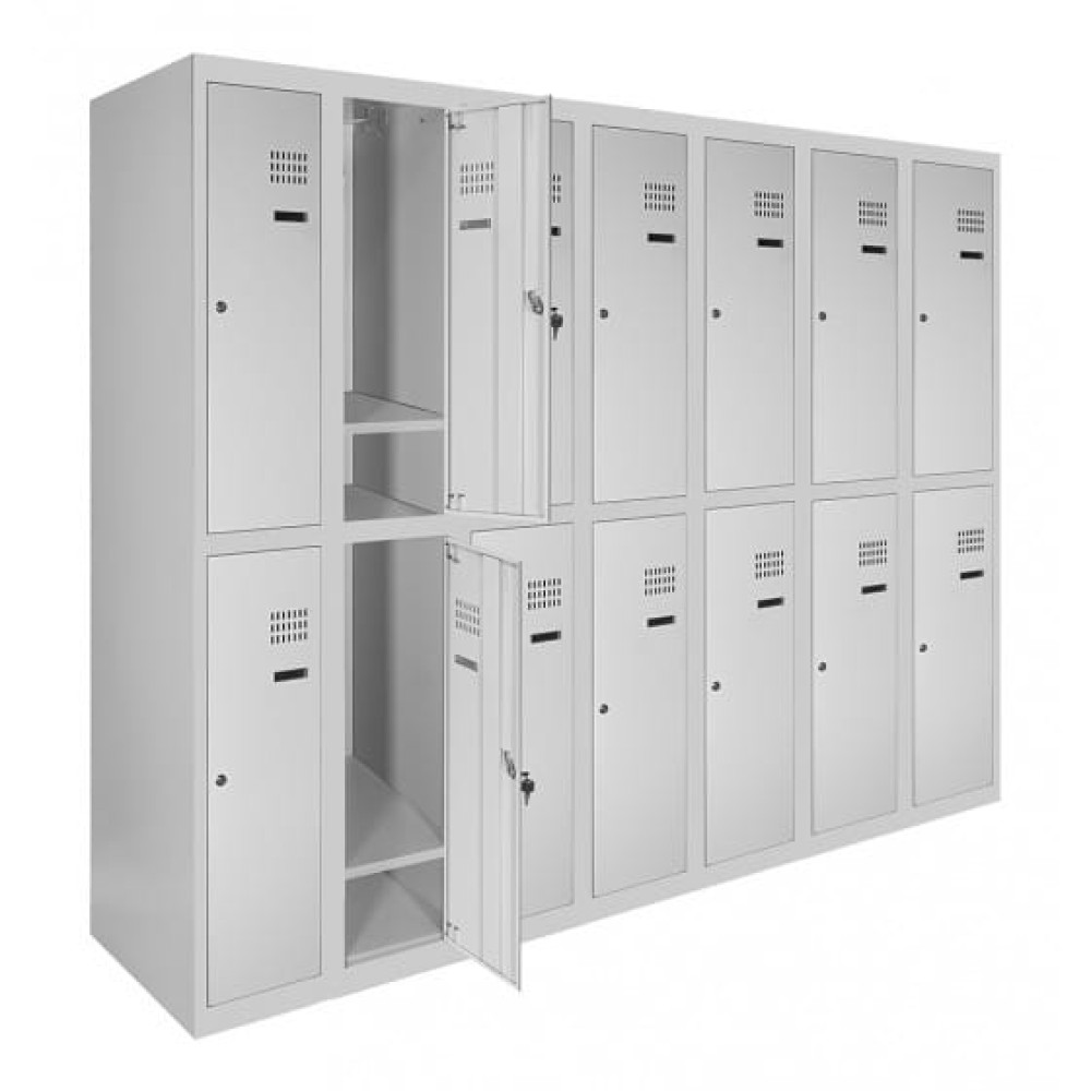 Шкаф для раздевалок металлический с нижней полкой 7 секций, 14 дверец, 2 полки секия 400 мм ГАЛЛА