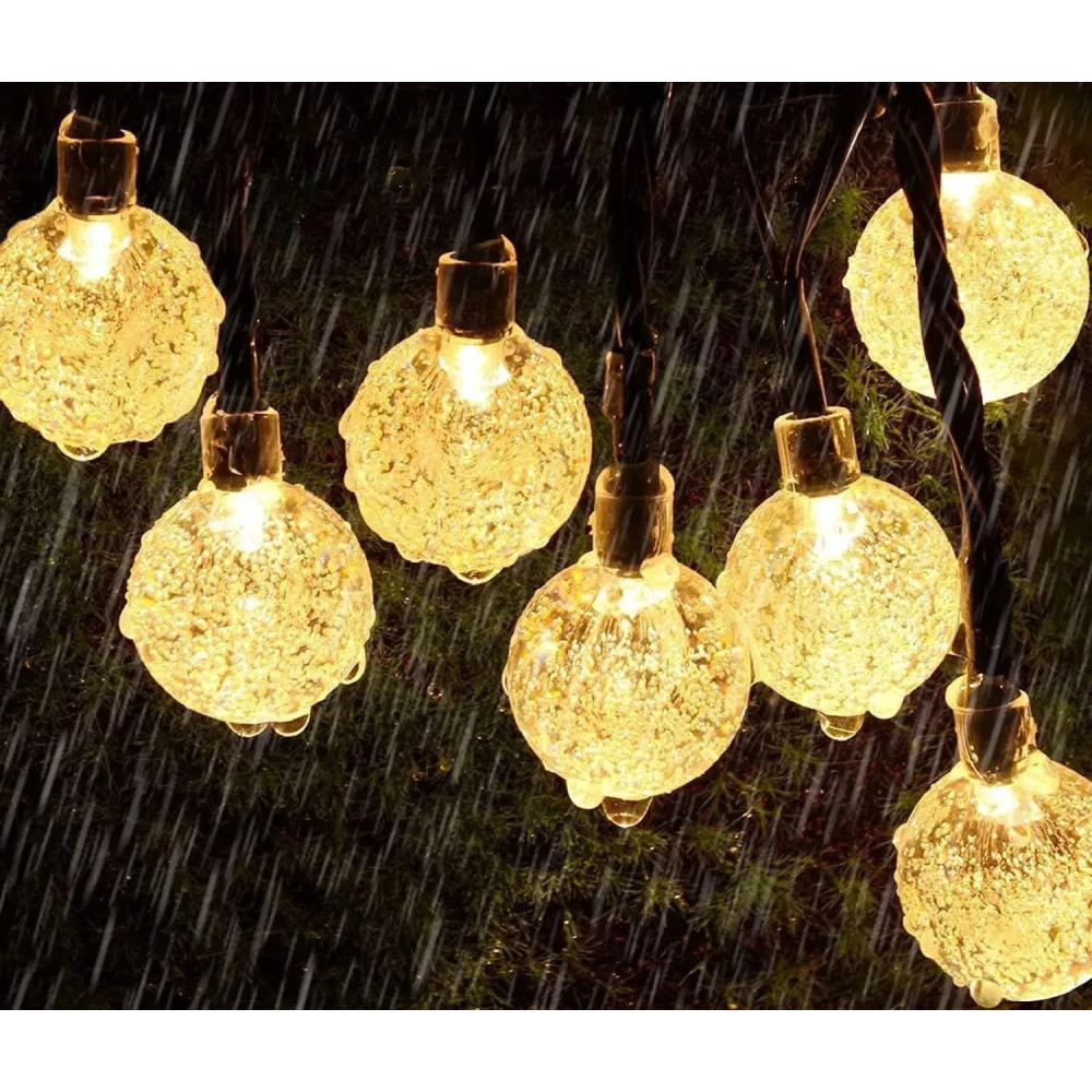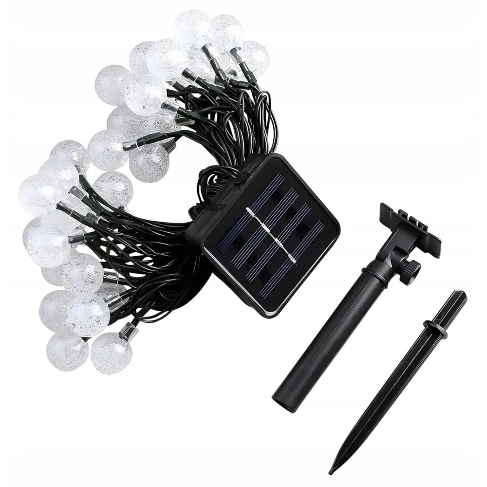 Солнечная гирлянда SuperLED на 30 LED-шариков — это отличное решение для освещения любого пространства без электричества. Длина 5,5 метров позволяет удобно оформить балкон, сад, перголу, патио или подвесить вдоль ограды или фасада. Солнечная панель накапливает энергию днем, а датчик сумерек автоматически включает свет, когда темнеет. Шарики дают теплый белый свет (2700–3000К), который создает уютную, мягкую атмосферу. Гирлянда обладает устойчивостью к влаге и пыли (IP65), а ее энергонезависимость и простота монтажа делают ее идеальной для ежедневного или праздничного использования.