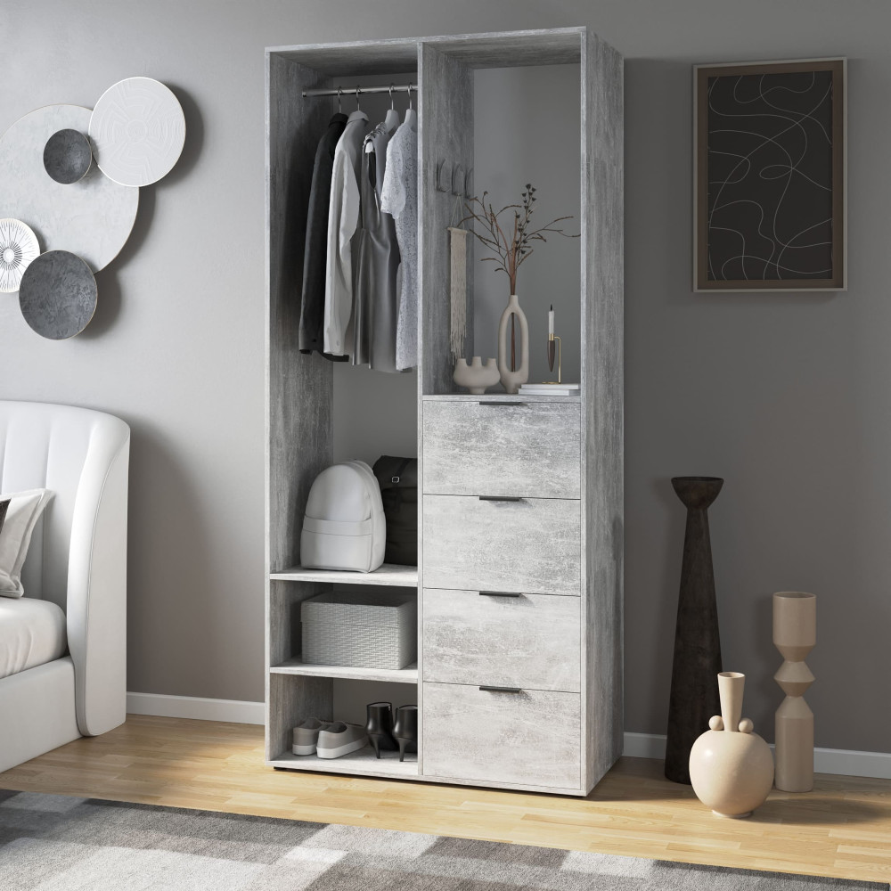 Современная прихожая для одежды и обуви с ящиками для одежды и обуви Бетон