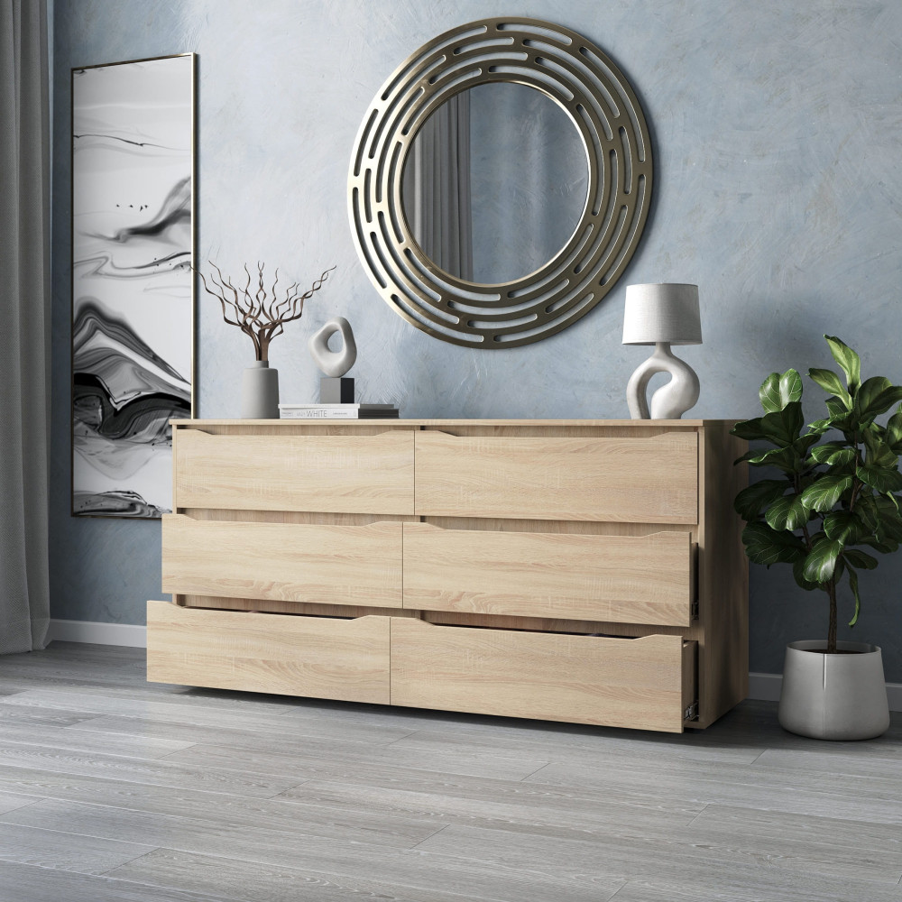 Современный большой комод на 6 ящиков без ручек Дуб Сонома