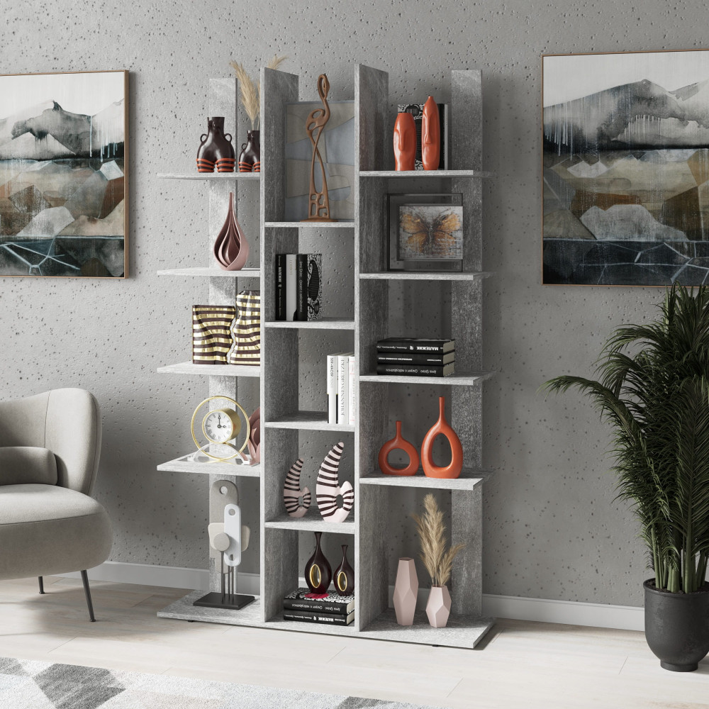 Современный книжный стеллаж для дома и офиса на 15 ячеек Бетон