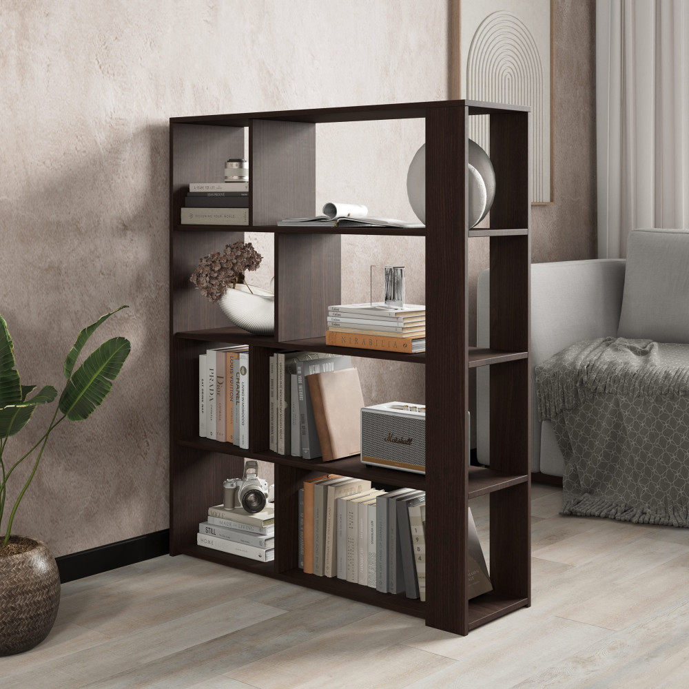 Современный книжный стеллаж для книг и декора на 8 ячеек Венге
