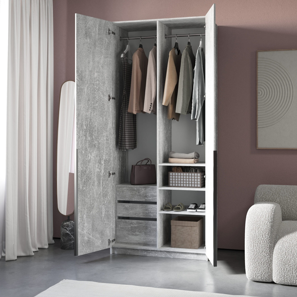 Современный шкаф со штангами и встроенной тумбой Бетон, 234.5х80х50 см