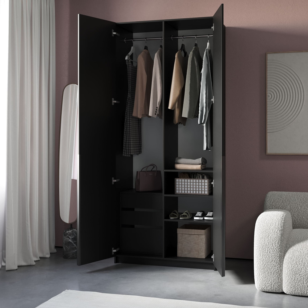 Современный шкаф со штангами и встроенной тумбой Черный, 234.5х90х50 см