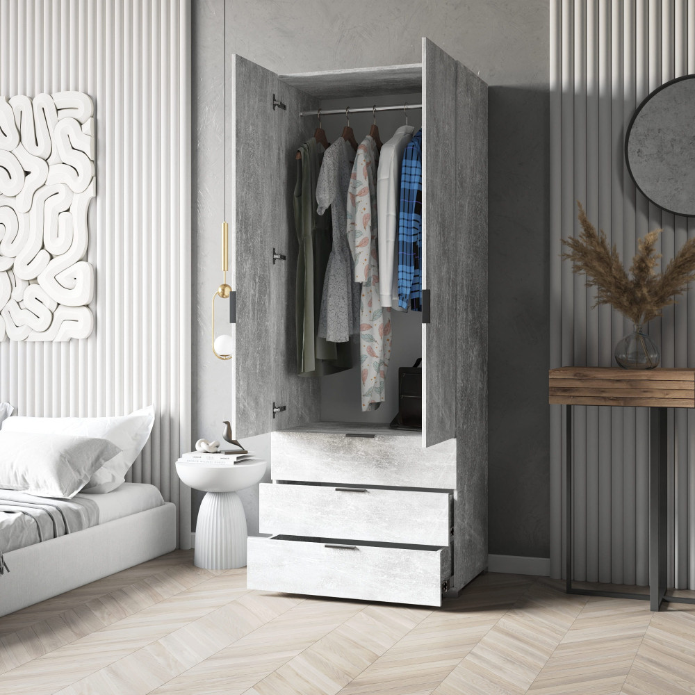 Современный шкаф со штангой и ящиками Бетон, 206.5х70х50 см