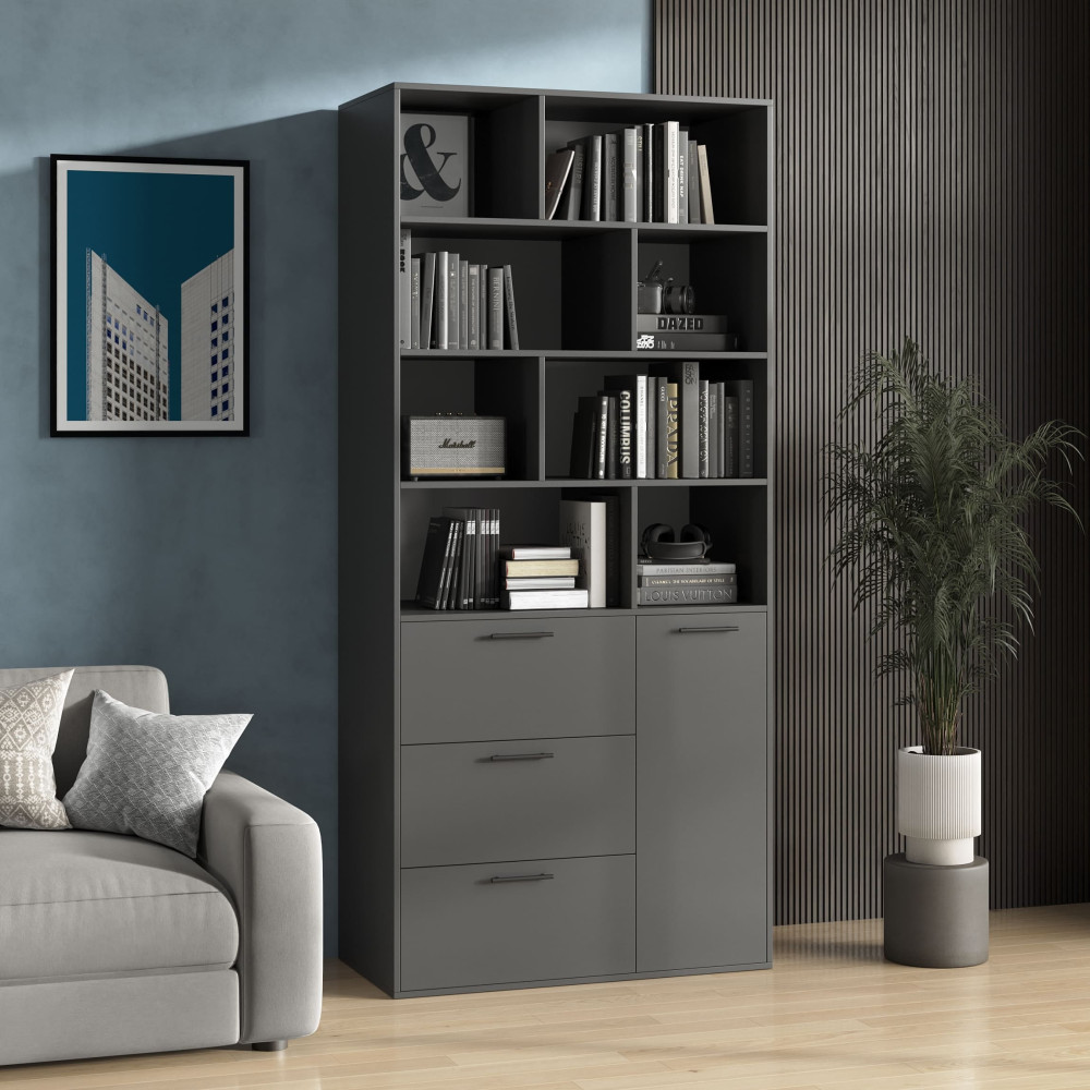 Современный стеллаж с ящиками и дверкой Антрацит