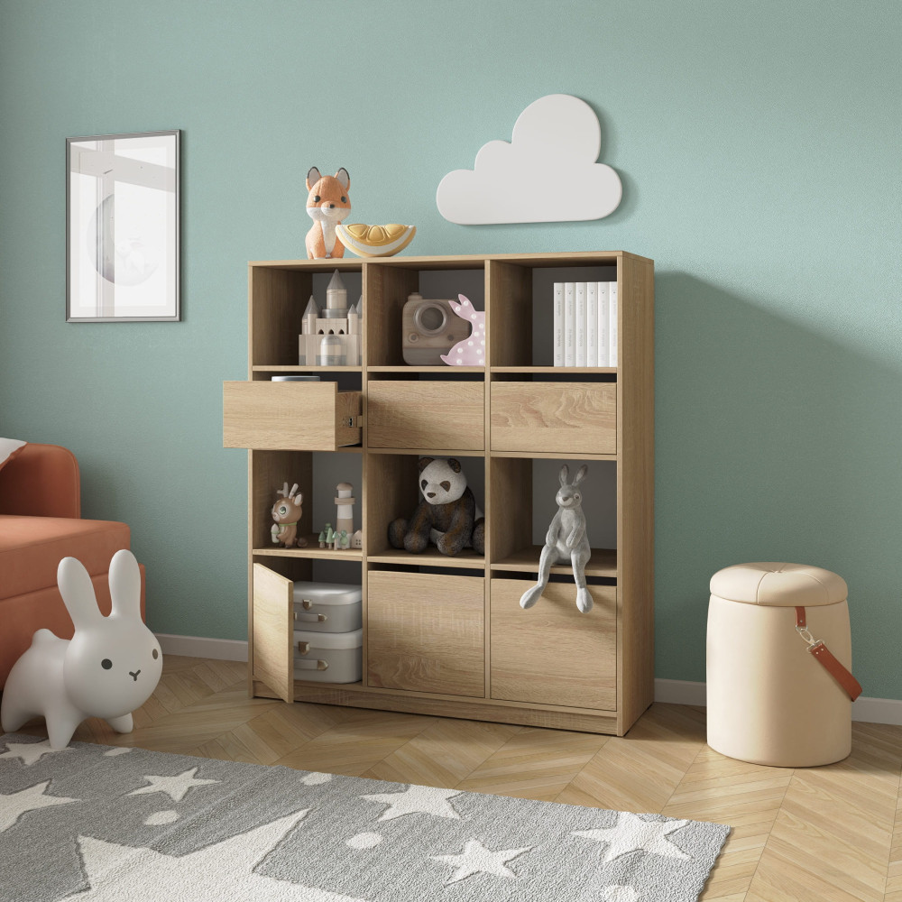 Стеллаж в детскую комнату с ящиками и дверками Дуб Сонома