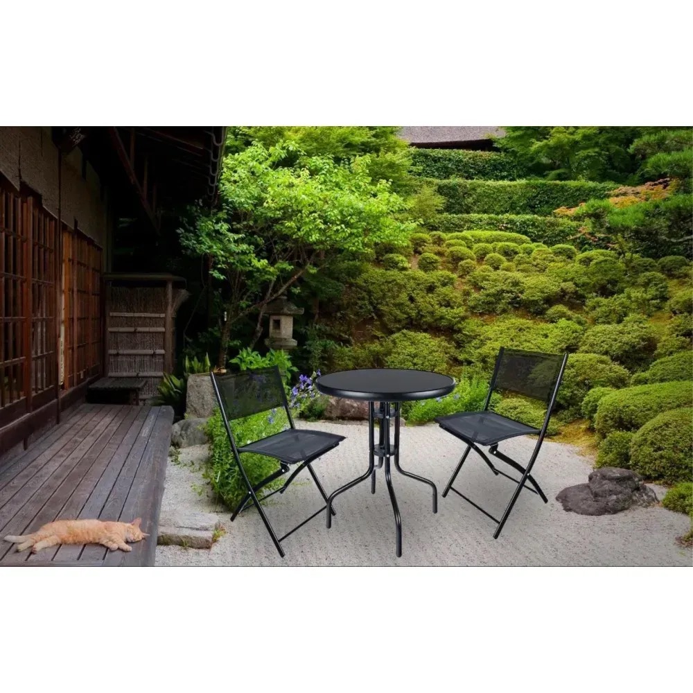 Стол стеклянный садовый для террасы черный