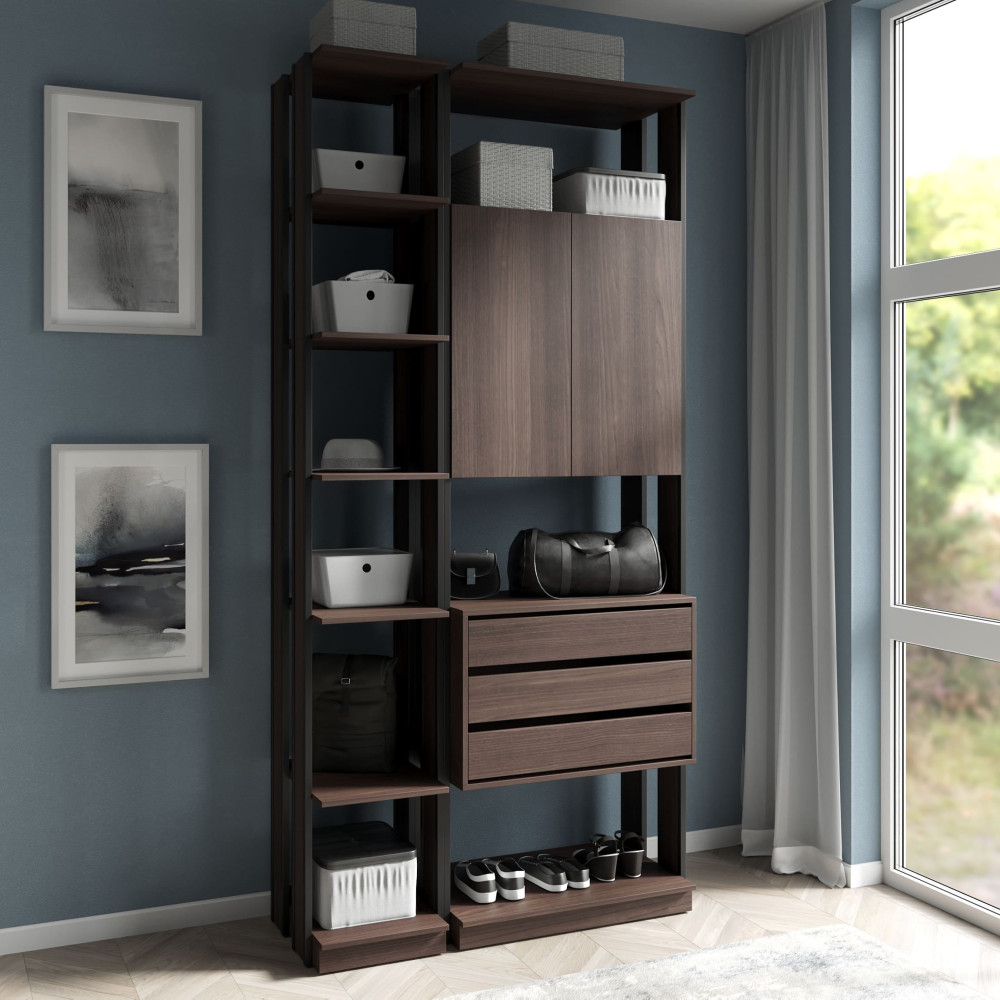 Стильная гардеробная в стиле Лофт с полками и ящиками Венге