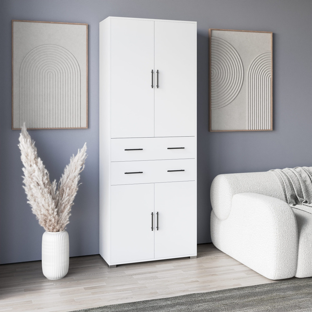 Стильный шкаф с выдвижными ящиками Белый, 212.5х100х35 см