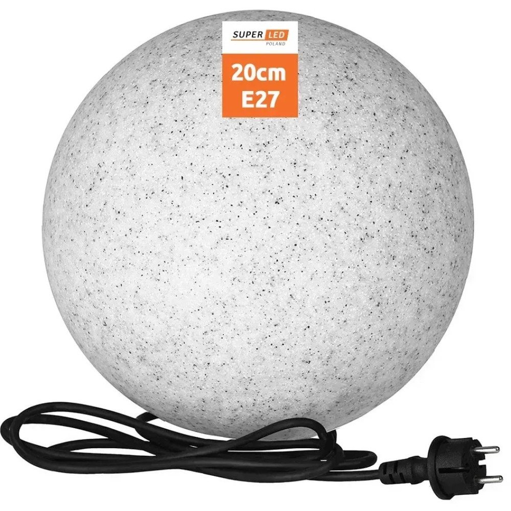 Декоративная садовая лампа SuperLED Balli Stone; Кабель питания с вилкой; Лампочка E27 (не входит в комплект) |