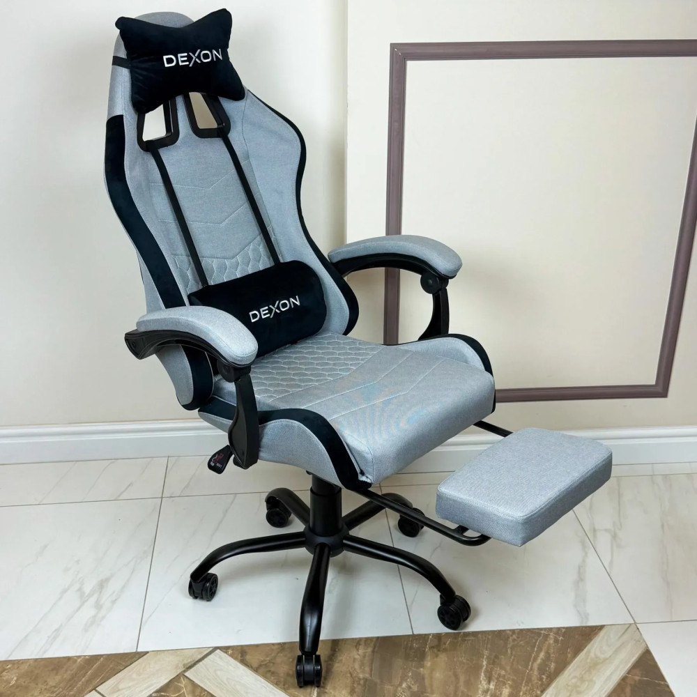 Сучасне крісло для ігор, навчання та роботи, що поєднує комфорт, стиль і ергономіку. М’яка тканинна оббивка, яка «дихає», і подушки з велюру створюють затишок навіть під час тривалого сидіння. Тканина не парить у спеку і зберігає приємні відчуття навіть після кількох годин роботи, а велюрові подушки підтримують спину та шию та додають елегантності.