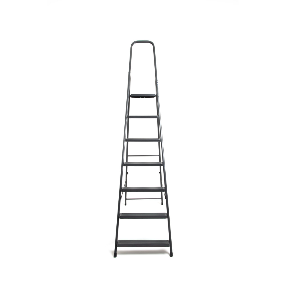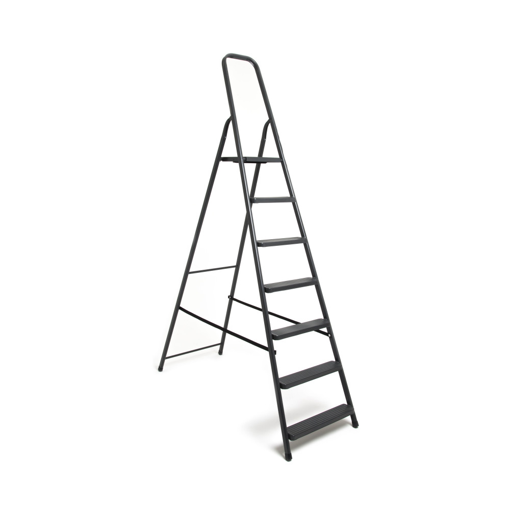 Зручна та надійна металева стрем'янка для виконання завдань на невеликій висоті. Модель витримує максимальне навантаження 125 кілограм. Виготовлена з високоякісної сталі, вона легка, міцна і довговічна. Погода і час не пошкодять зовнішній вигляд конструкції. Доглядати за стрічкою легко, достатньо просто протерти виріб серветкою. Покриття на сходинках забезпечує стабільність під час використання. Наконечники сходинки підібрані таким чином, щоб уникнути ковзання на різних поверхнях. Для збільшення терміну експлуатації, виробник потурбувався про захист від корозії.