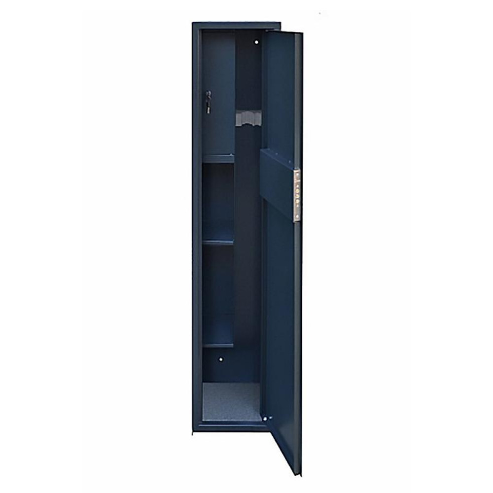 Сейф для зберігання зброї призначений для зберігання нарізної та гладкоствольної зброї в домашніх умовах. Сейф виготовлений з металу товщиною 1.5 мм та 1.0 мм, загальною вагою 20 кг і зовнішніми розмірами 1400*270*250 мм. Колір антрацит (RAL 7016). Внутрішні розміри дозволяють вільно розташовувати дві одиниці зброї.