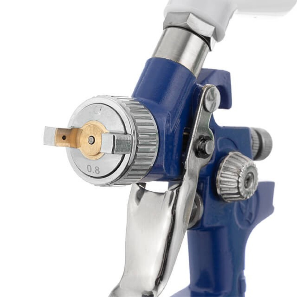 Набір з 3-х фарбопультов HVLP, 0,8мм, 1,3мм, 1,7мм, регулятор тиску, два пластикових та один металевий бачок - Фото 10