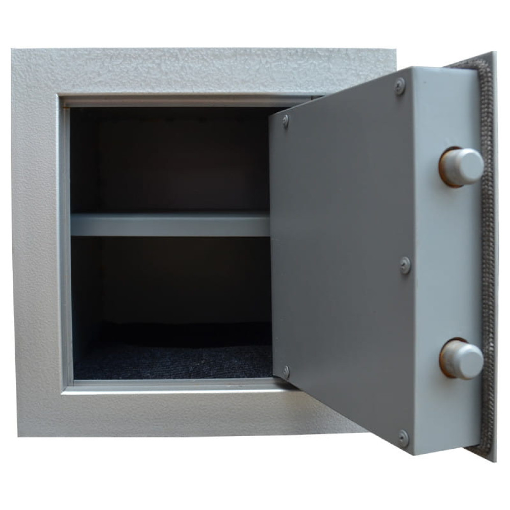 Вогнезломостійкий сейф призначений для зберігання документів та цінностей під час пожежі. Корпус вогнезломостійкого сейфа посилений профільною трубою з боку дверей, що надає конструкції додаткову жорсткість та підвищує рівень стійкості до злому. Двері даного сейфа утопленого типу. Сейф виготовляється з листів сталі товщиною 3,0 мм (корпус) та 5,0 мм (дверна плита). Конструкція дверей сейфа працює як антизріз петель.