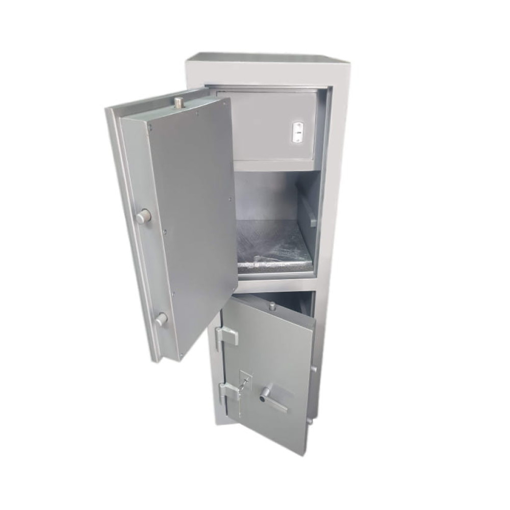 Вогневзломостійкий сейф призначений для зберігання документів та цінностей під час пожежі. Корпус вогневзломостійкого сейфа посилений профільною трубою з боку дверей, що надає конструкції додаткову жорсткість та підвищує рівень стійкості до злому. Двері даного сейфа виконані врівень із зовнішніми петлями для повного відкриття дверей. Конструкція корпусу виконана з листів сталі товщиною 3,0 мм (корпус) та 5,0 мм (дверна плита).