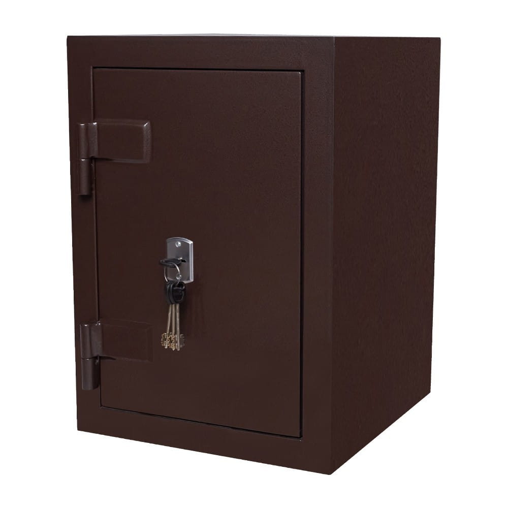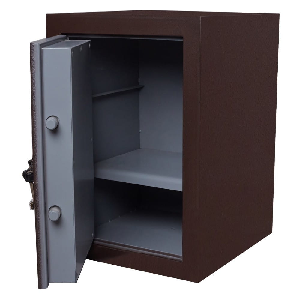 Вогне-зломостійкий сейф призначений для зберігання документів і цінностей при пожежі. Корпус вогне-зломостійкого сейфа посилений профільною трубою з боку дверей, що надає конструкції додаткову жорсткість і підвищує рівень стійкості до злому. Двері даного сейфа виконані урівень і мають зовнішні петлі для повного відкриття дверей. Конструкція корпусу виконана з листової сталі товщиною 3,0 мм (корпус) і 4,0 мм (дверна плита).