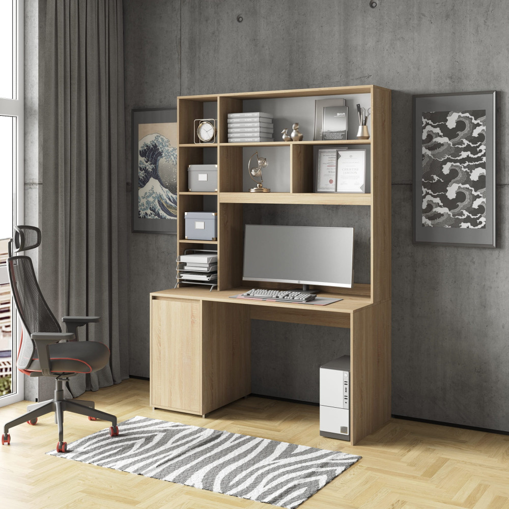 Письмовий офісний столик з тумбою та надбудовою Дуб Сонома