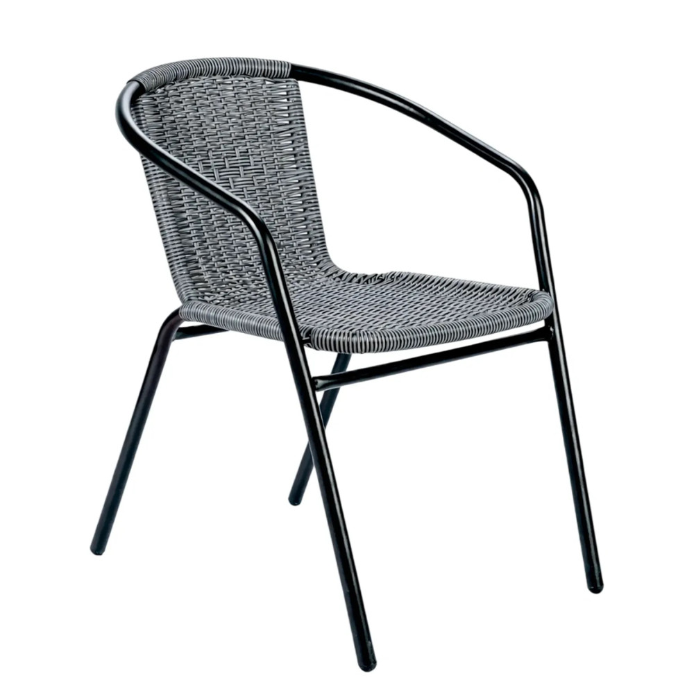 Каркас із міцного металу з порошковим покриттям захищає крісло від вологи, іржі та механічних пошкоджень. Конструкція витримує навантаження до 120 кг і підходить для щоденного використання на вулиці, включно з активною експлуатацією у кафе, ресторанах і готелях. Компактні розміри та легка вага дозволяють легко переміщувати крісло та розміщувати його навіть на невеликих балконах або терасах.