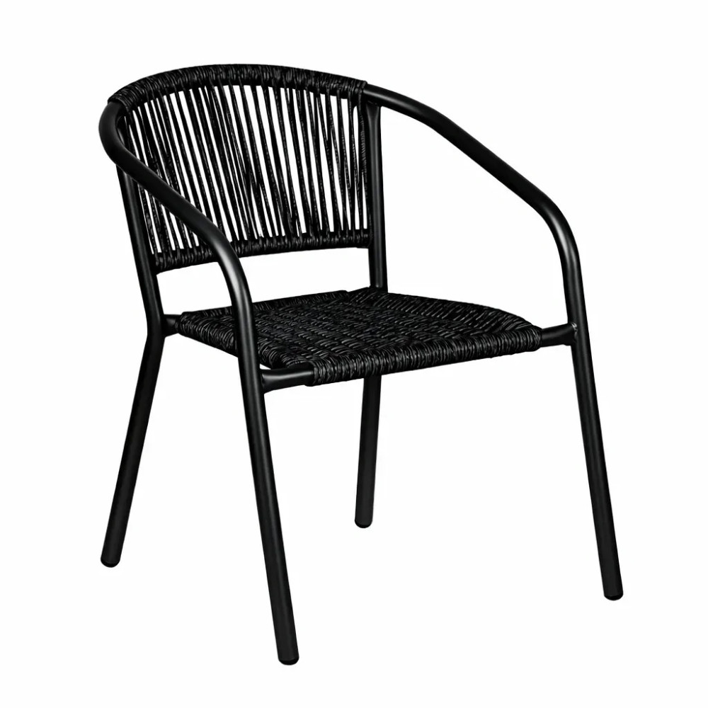 Каркас із міцного металу з порошковим покриттям захищає крісло від вологи, іржі та механічних пошкоджень. Конструкція витримує навантаження до 120 кг, легко переноситься та підходить для щоденного використання на відкритому повітрі. Компактні розміри та продумана форма дозволяють розмістити крісло на невеликих терасах, балконах або в лаунж-зонах.