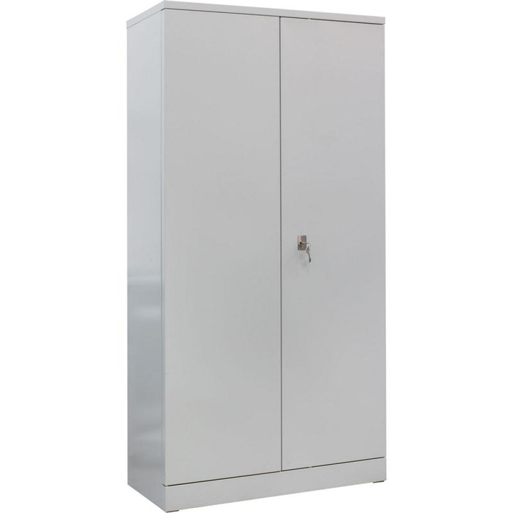 Офісна шафа має зварну конструкцію, що підвищує надійність виробу. Для її виробництва використовується сталь товщиною 1,2 мм. Завдяки цьому шафа витримує помірні навантаження і менше схильна до зносу. Металеві поверхні проходять спеціальну обробку і фарбуються порошковою фарбою. Це захищає виріб від корозії, викликаної вологою чи контактом з рідинами. Висота корпусу становить 1970 мм, тому людині легко дістати до верхніх полиць. Для більшої надійності верхня полиця жорстко приварена до каркаса. Решта полиць регулюються з кроком 50 мм. При необхідності шафу можна комплектувати додатковою полицею.