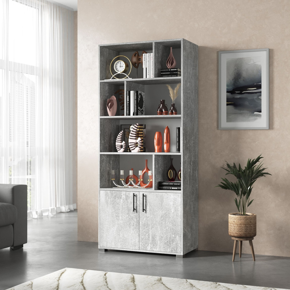 Стелаж з відкритими полицями та тумбою з дверками Бетон