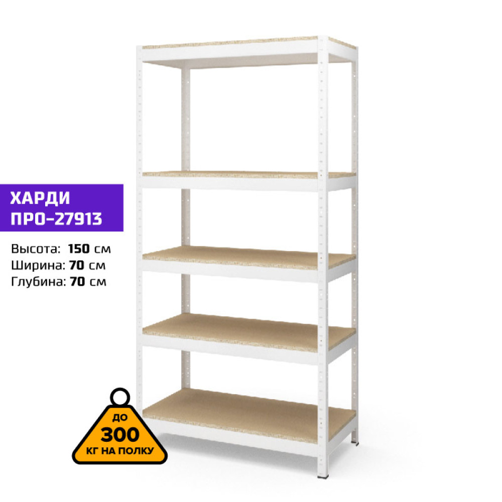 Стелаж металевий ХАРДІ-ПРО-27913 БІЛИЙ 5 полиць з ДСП