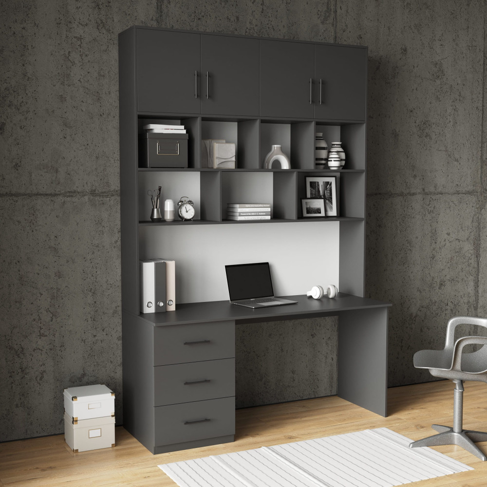 Стіл письмовий офісний з надбудовою та шухлядами Антрацит