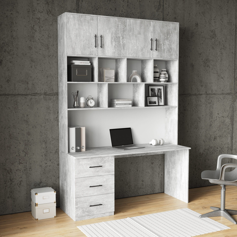 Стіл письмовий офісний з надбудовою та шухлядами Бетон