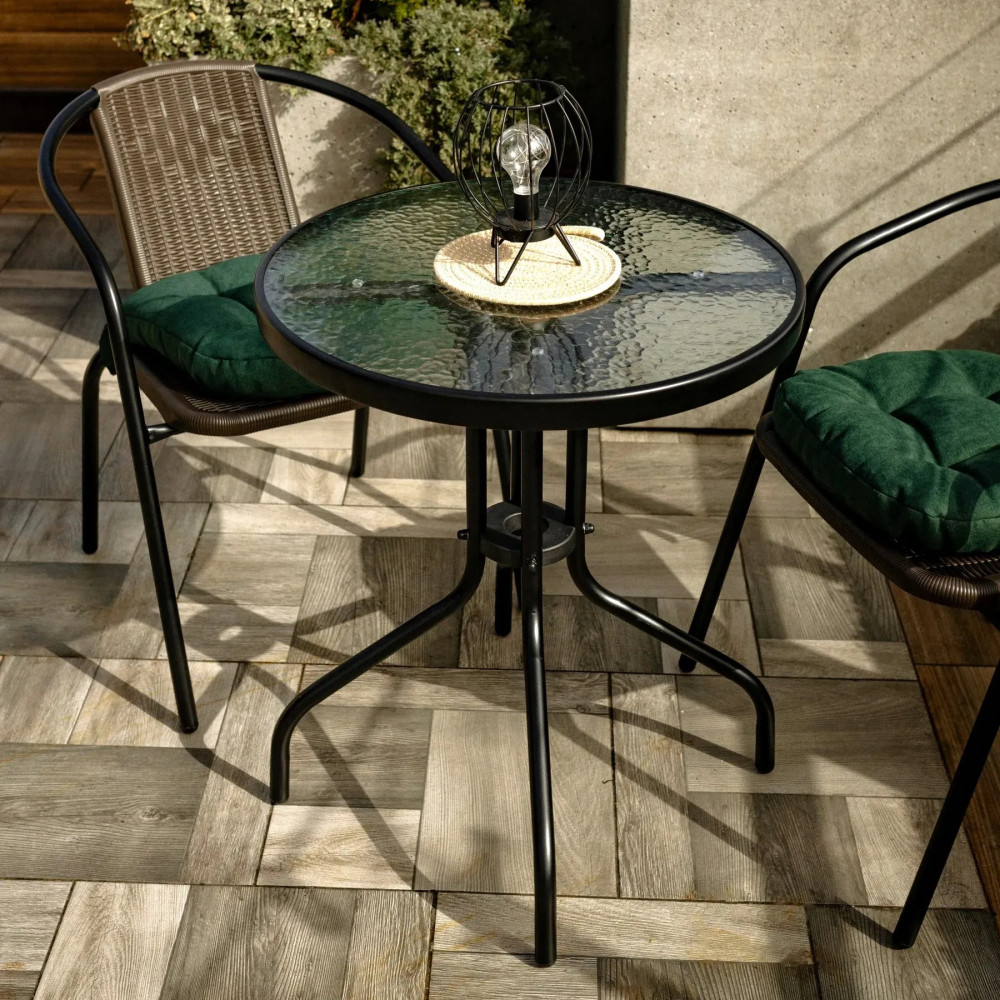 Садовий стіл ⌀60 см — компактне та практичне рішення для балкона, тераси або патіо. Кругла форма зручна для щоденного використання та комфортно підходить для 2–4 осіб.
