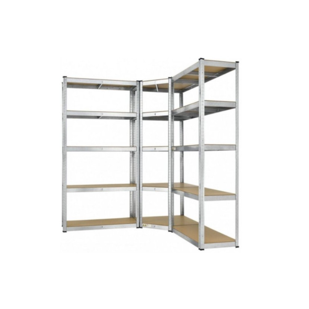 Комплект з трьох стелажів металевих ЦИНК 5 полиць МДФ - в комплект входить один кутовий стелаж два прямих