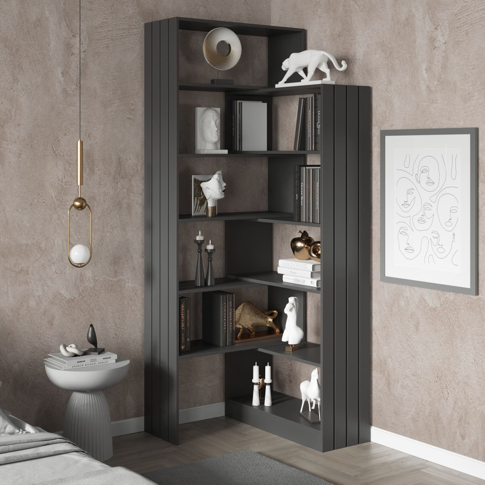 Універсальний та стильний стелаж для книг та декору – ідеальне рішення для організації вашої колекції літератури. Виготовлений із міцних матеріалів, цей стелаж забезпечує зручність використання завдяки своїм просторим полицям, які можуть легко адаптуватись під книги різних розмірів. Його елегантний дизайн підходить для будь-якого інтер'єру, забезпечуючи функціональність та естетичне задоволення одночасно.
